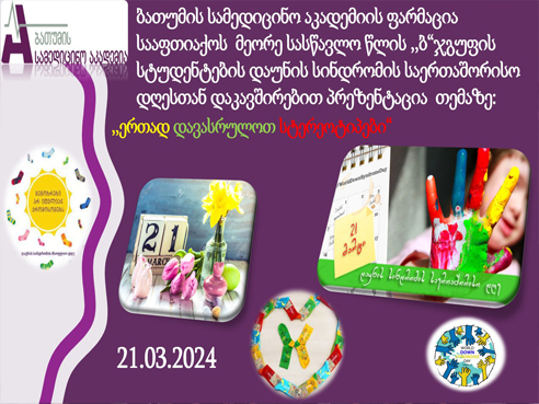 2024 წლის 21 მარტს ბათუმის სამედიცონო აკადემიის სტუდენტთა თვითმმართველობის ხარაჭერით გაიმართა დაუნის სინდრომის საერთაშორისო დღესთან დაკავშირებით საინფორმაციო შეხვედრა და დისკუსია თემაზე:,, ერთად დავამთავროთ სტერეოტიპები“.