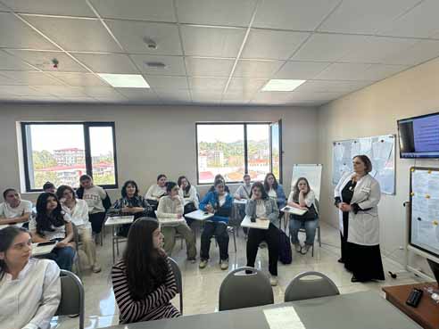 „პროფესიული განათლება წარმატებისთვის“... 17.04.24-ში ბათუმის სამედიცინო აკადემიაში აკადემიის ადმინისტრაციის უფროსსმა - (ქ/ნი ინგა შალამბერიძე) და სტრატეგიული განვითარებისა და ხარისხის უზრუნველყოფის მენეჯერმა(ქ/ნი მზია ბაკურიძე) ჩაატარა ღია ლექცია თემაზე: ,,ჩემი მომავალი პროფესია". შეხვედრის მიზანი იყო პროფესიული განათლების შესახებ ინფორმაციის გავრცელება და საზოგადოებაში ცნობიერების ამაღლების ხელშეწყობა. შეხვედრას ესწრებოდნენ სსიპ-ქალაქ ბათუმის N7 საჯარო სკოლის მე-9 და მე-10 კლასის მოსწავლეები პედაგოგებთან ერთად (თამუნა ჩხეიძე-დირექტორის მოადგილე; ინგა შალამბერიძე-ბიოლოგიის პედაგოგი) და და სსიპ-ქ. ბათუმის N18 საჯარო სკოლის მე-9 და 11-ე კლასის მოსწავლეები პედაგოგთან ერთად (მაია სურმანიძე-წამყვანი მასწავლებელი, ბიოლოგიის პედაგოგი) . მოსწავლეები დაესწრნენ პსპ ფარმაცია (სააფთიაქო)ს მეორე სასწავლო წლის ,,ბ"'ჯგუფის სტუდენტებთან ჩატარებულ პრაქტიკულ მეცადინეობას თემაზე: ,,მყარი სამკურნალწამლო ფორმების მომზადება", სადაც მიეცათ საშუალება ერთობლივად დაემზადებინათ რთული, დოზირებული, შინაგანი დანიშნულების მყარი სამკურნალწამლო ფორმა- ,,ფხვნილი''. მოსწავლეებს შესაძლებლობა მიეცათ გაცნობოდნენ, დაათვალიერებინათ აკადემიის ინფრასტრუქტურა, სასწავლო აუდიტორიები, ლაბორატორიები და ამომწურავი პასუხები მიეღოთ მათთვის საინტერესო შეკითხვებზე.